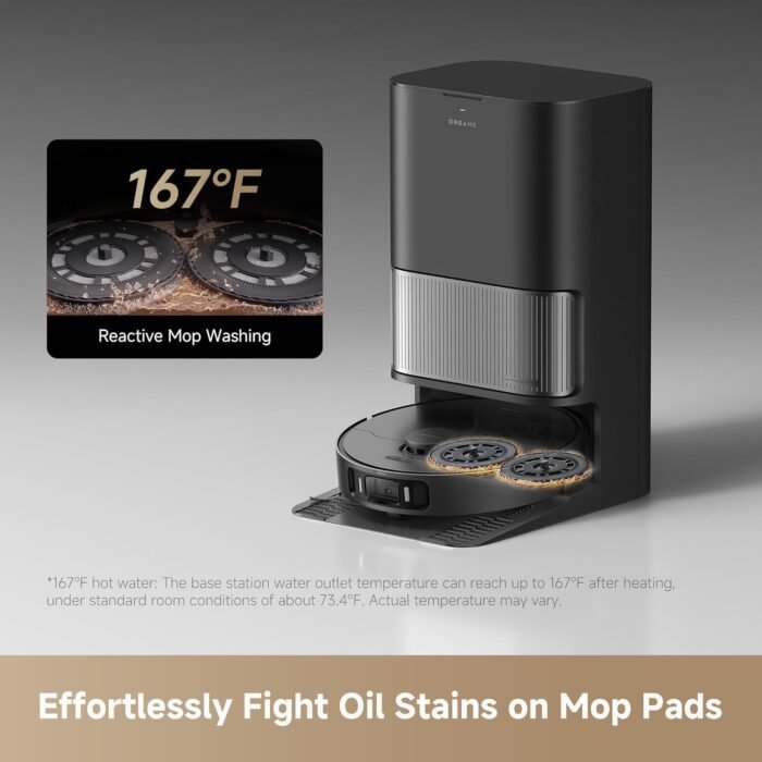 Thorough Post-Cleaning Care: Relish effortless maintenance with the all-in-1 PowerDock dock. It auto-empties dust for up to 100 days, dries mops with hot air, cleans the washboard, and more for a fully automated post-cleaning experience. Forget about manually cleaning mop pads, as the robot vacuum cleans them for you using 75°C hot water, tackling tough stains and grease.