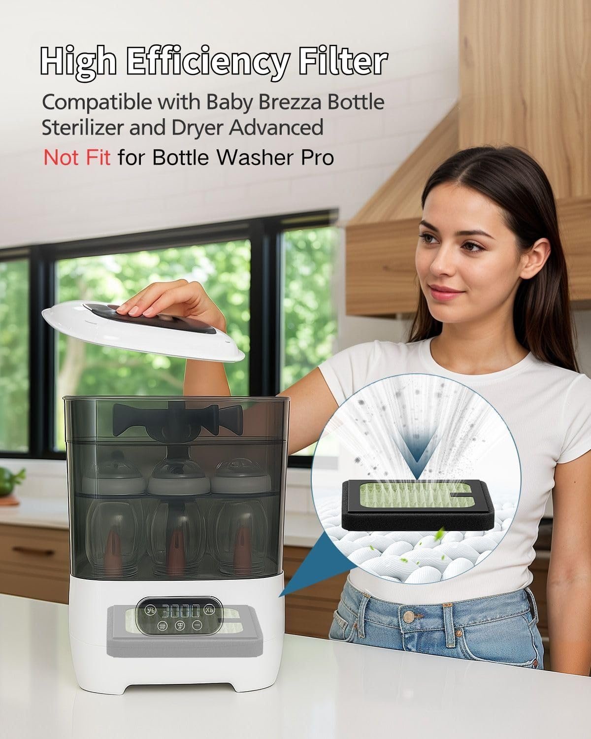 【Perfect Compatibility】Our Premium filters are compatible with Baby Brezza Baby Bottle Dryer Advanced and Baby Brezza Baby Bottle Washer. 【Not for Pro!!!】Please confirm your machine model before buying. Filter made of FSC-Certified paper