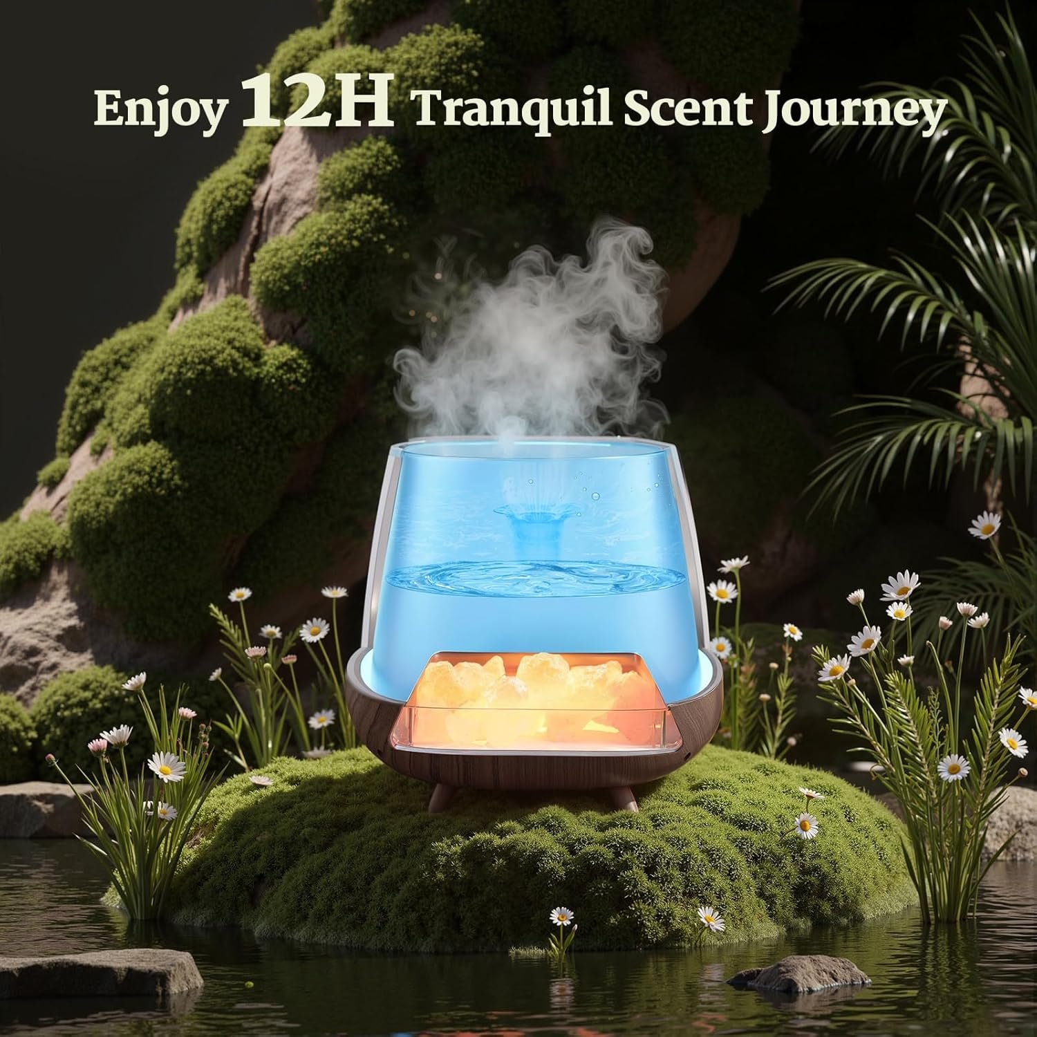 4 in 1 Aromatherapy Diffuser : Our product integrates the functions of an aromatherapy diffuser, Himalayan salt lamp, night light, and humidifier into one. The oil diffuser utilizes ultrasonic technology to vibrate water and disperse essential oils, improving sleep quality, relaxing your mood, and creating a comfortable, pleasant environment.