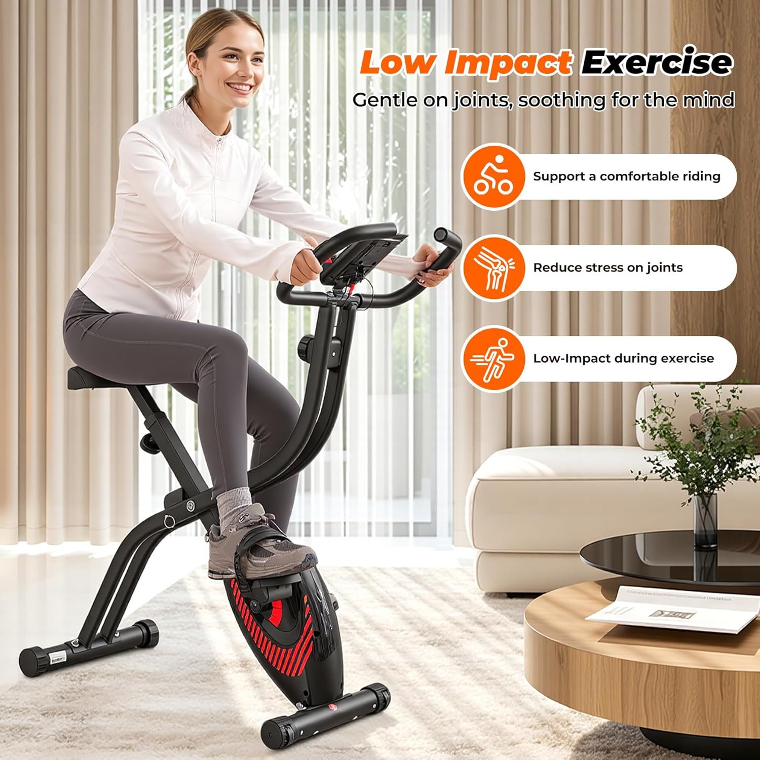 Exercise Bike, 3 IN 1 Stationary Bike, Folding Exercise Bike with 16-Level Resistance, Comfortable Seat Cushion, LCD Monitor, 265 lbs Weight Capacity for Home Gym Workout