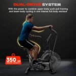 【Full-Body Workout Engagement】Dual-action arms engage upper body (arms, back) while pedaling targets legs, with leg supports for isolated upper-body training. High-density foam grips and adjustable strap-in pedals enhance intensity, while fan blades generate natural cooling airflow to keep you focused