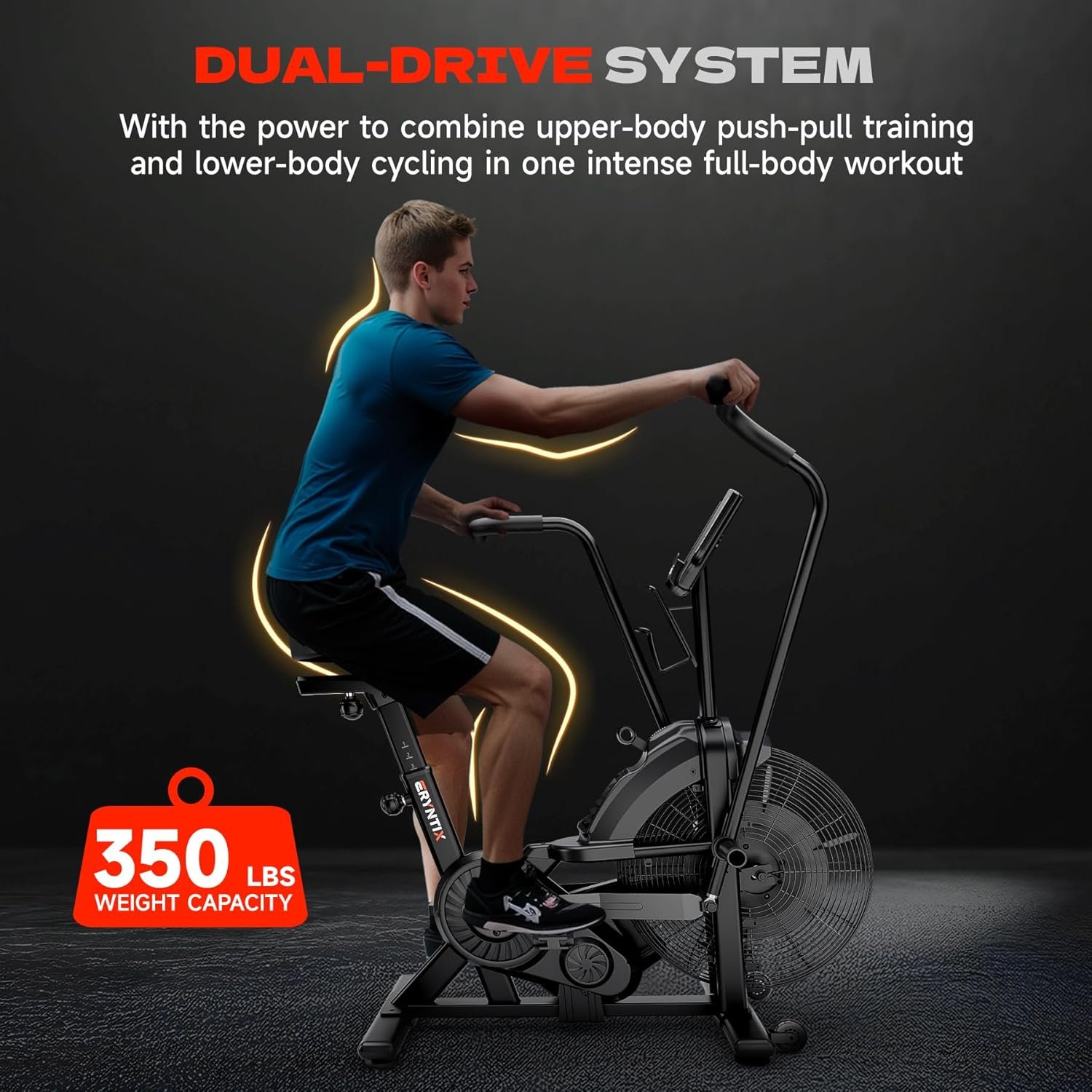 Fitness Exercise Bike | Magnetic & Air Resistance Exercise Bike | Adjustable Dual-Action Handlebars | APP-Connected Home Cardio Equipment