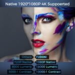 【Native 1080P | 4K Support】With a 1920 x 1080 resolution, the outdoor native 1080P projector can display more explicit images and supports 4K video playback. The portable projector with high lumens can improve the resistance to ambient light and offers a brighter image. The movie projector with a 10000:1 contrast ratio has great color accuracy, allows for more realistic color reproduction, and highlights darker details.