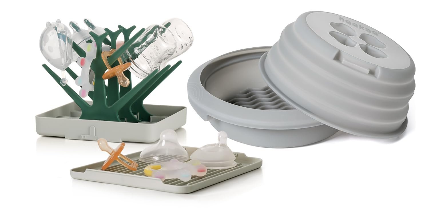 haakaa Portable Baby Bottle Drying Rack & Multipurpose Silicone Microwave Bottle Sterilizer