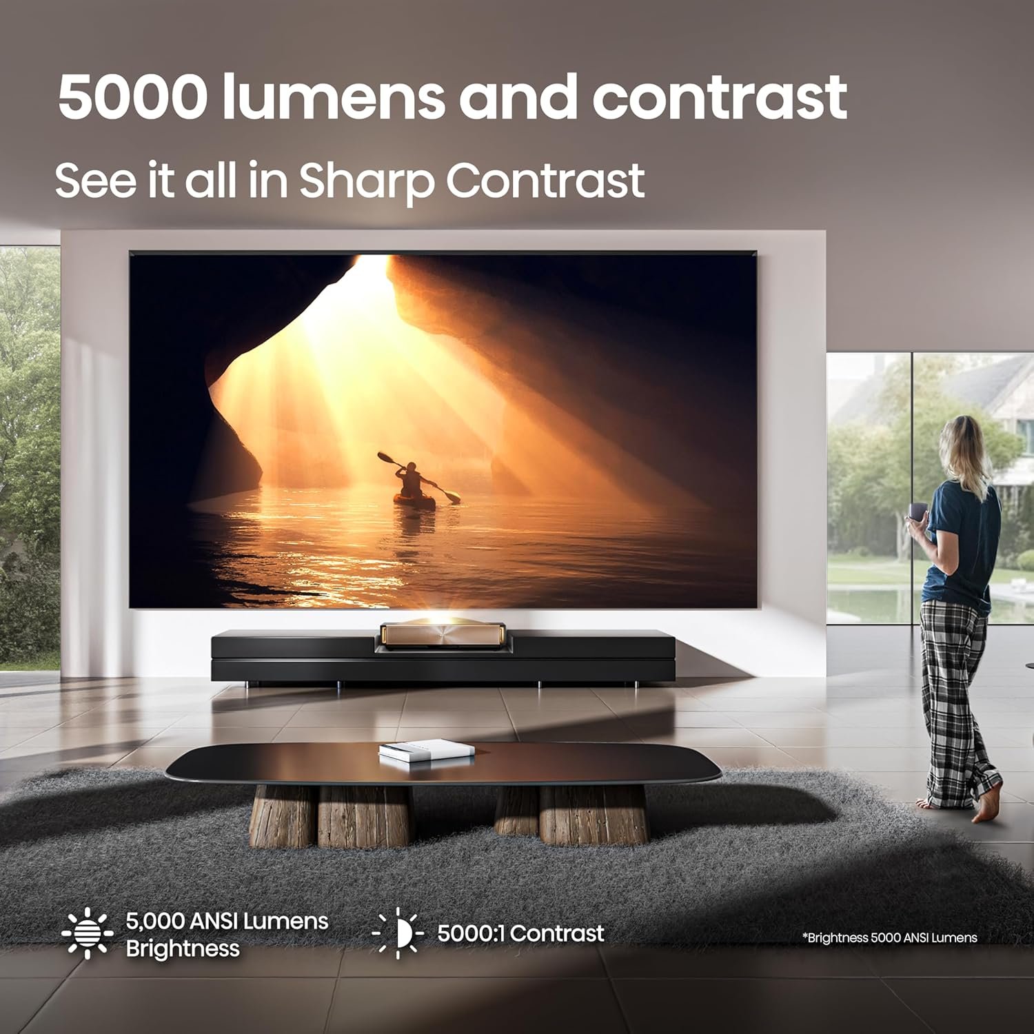 Ultra-high brightness and contrast: With 5,000 ANSI Lumens of brightness, you can get clear, vivid images even in well-lit rooms. The 5,000:1 contrast ratio delivers deeper blacks and brighter whites for dynamic, lifelike visuals with excellent detail and outstanding color reproduction
