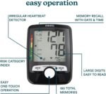 FEATURES – This BP monitor features irregular heartbeat detection, excessive body movement detection, risk category index, date and time stamp, and auto shutoff.