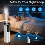 𝑸𝒖𝒊𝒆𝒕 𝑯𝒖𝒎𝒊𝒅𝒊𝒇𝒊𝒆𝒓𝒔 𝒇𝒐𝒓 𝑩𝒆𝒅𝒓𝒐𝒐𝒎: The humidifier for bedroom with sleep mode is incredibly quiet at just 35dB, comes with 7-color breathing lights, and is perfect for use at night without disturbing sleep. All device lights turn off in sleep mode. You can control it at any time with a remote control that enables one-click adjustment within a 10-20ft range