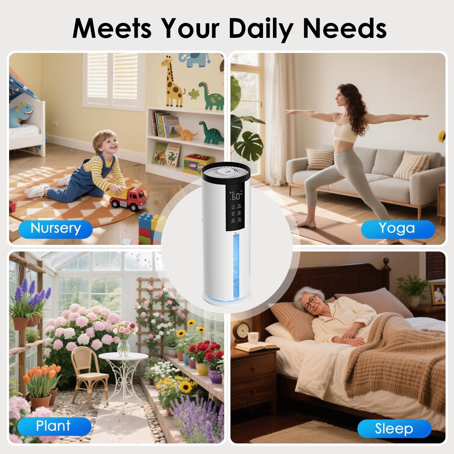 𝑷𝒐𝒘𝒆𝒓𝒇𝒖𝒍 𝑯𝒖𝒎𝒊𝒅𝒊𝒇𝒊𝒄𝒂𝒕𝒊𝒐𝒏: The humidifier for whole home features advanced atomization, 1.3ft extendable tube, and 360° nozzle. It delivers 500mL/h mist, 5.68 ft in height, 80h runtime, reaching every corner to effectively humidify up to 650 ft² with consistent distribution, providing uninterrupted comfort for baby, adult, plant in homes, offices, and greenhouses