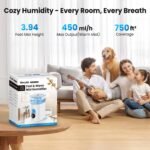 𝑭𝒂𝒔𝒕 & 𝑬𝒇𝒇𝒆𝒄𝒕𝒊𝒗𝒆 𝑯𝒖𝒎𝒊𝒅𝒊𝒇𝒊𝒄𝒂𝒕𝒊𝒐𝒏: With a maximum mist output of 450ml/h and 3.94 ft in height, this air humidifier covers up to 750 ft², effectively increasing room humidity. It is equipped with 6L large-capacity water tank and 360° rotating nozzle, offering 48H runtime—making it ideal for plants and babies