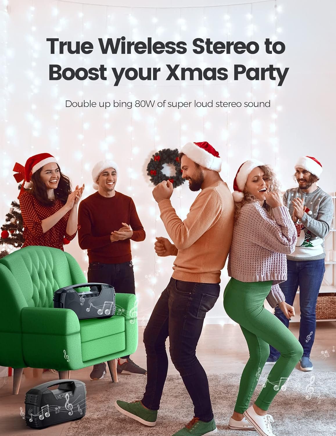 Durable Portable Speaker with Handle: Crafted from ultra-durable ABS and metal, this portable outdoor speaker is very durable and impact-resistant. With a built-in handle, it’s so convenient to carry the speaker anywhere for outdoor sports or other activities, bringing big fun with us. This big speaker is a great choice as a gift for men, women, teenagers, and seniors everyone who loves music