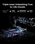 Triple Laser Unleashes Vivid Colors : JMGO N1S 4K proyector features MALC 2.0 pure RGB triple laser technology, delivering industry-leading color performance. Unlike hybrid lasers, it eliminates the color wheel, completely removing the rainbow effect, while LSR speckle reduction enhances clarity. With 110% BT.2020 and 151% DCI-P3 color coverage, it ensures exceptional color precision and contrast. 1100 ISO lumens and 1.07 billion colors produce vivid, stunning visuals on any surface.