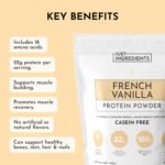 JUST INGREDIENTS French Vanilla Protein Powder – 30 Serving Bag – Grass-Fed Whey & Plant Protein Blend with Real Vanilla Bean – Sweetened with Coconut Sugar & Monk Fruit, Non-GMO, Gluten-Free