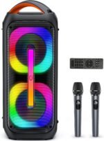 🎶Superb Sonic Journey🎶: T11-T karaoke system built-in 2*6.5″ full range speakers, the whole frequency is low to slice to produce clean music, which nicely protect the trumpet of good whole frequency. The powerful speaker with microphones delivers super loud and crystal-clear sound, ensuring that every performance is awe-inspiring.