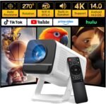 Mini Portable Projector for Bedroom with WiFi and Bi-directional Bluetooth 1080P 4K Support Smart Android 14 OS Auto Keystone Compatible with Netflix, YouTube, Prime Video, Disney+