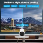 【1080P HD Video Projection】Supports 1080P/4K resolution to provide clear visual effects. Utilizes advanced LED technology for bright and lifelike projection. Seamless connectivity with the latest WiFi 6 and Bluetooth 5.0 ensures smooth streaming, and it’s also compatible with 2.4G and 5G networks and features Bluetooth 5.0 to connect to your favorite devices. With 160 ANSI lumens of brightness and a 1500:1 contrast ratio, this projector delivers stunning visuals, ensuring vivid colors and crisp details.