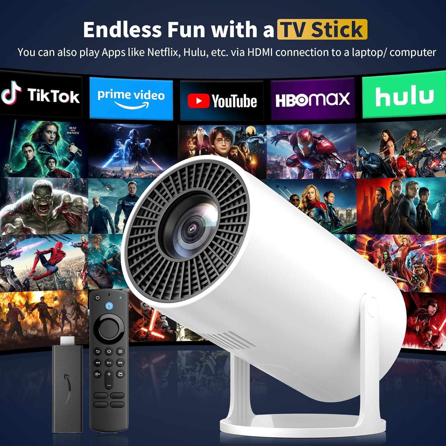 【Warm Tips】Due to HDCP agreement, screen mirroring doesn’t work (no image or sound) when you try to mirror the content from some streaming apps, Please play these videos by inserting a TV Stick into the projector or to connect to a smartphone(an iOS port to HDMI cable is needed)/laptop/computer via HDMI Connection