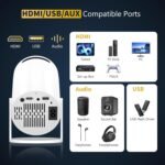 【Stable Wired Synchronizing Projector】No Wi-Fi & bluetooth functionality needed, the proyector offers stable wired connections, ensuring seamless streaming without lag, which is eqquiped with HDMI/USB/AUX ports and widely compatible with smartphones, tablets, computers, PS4, speakers, TV stick, etc., satisfying different connection and entertainment needs