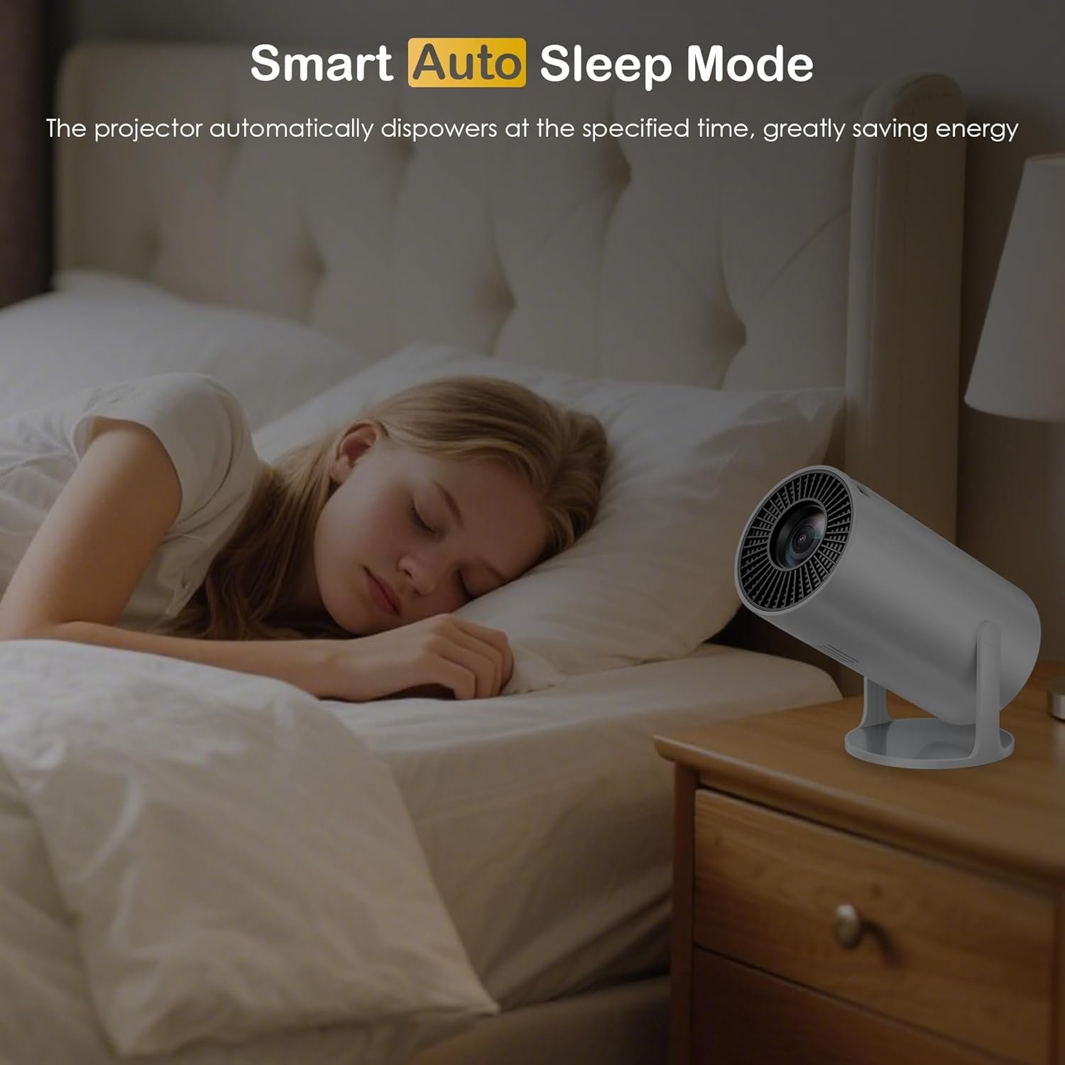 【Movie Projector with Immersive Sound】Equipped with HiFi speakers that deliver rich, high-fidelity audio, the mini portable projector creates an immersive cinematic experience even at home. Provides you a comfortable and mild sleep environment at movie nights especially when paired with its auto sleep mode