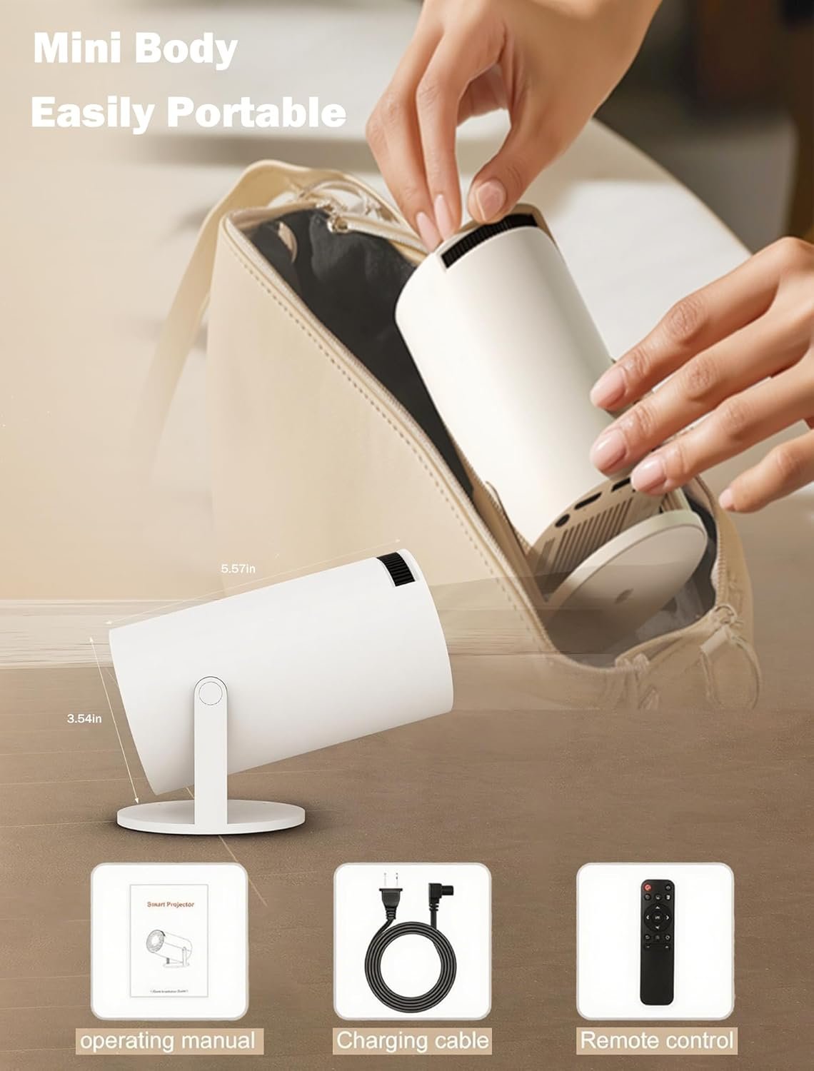 Palm-Level Small Projector: The projector body is only 3.98*6.69 inches, indoor such as bedroom, backyard, living room, outside such as camping, outdoor games, mobile office can be used, to truly realize the carry around, free projection