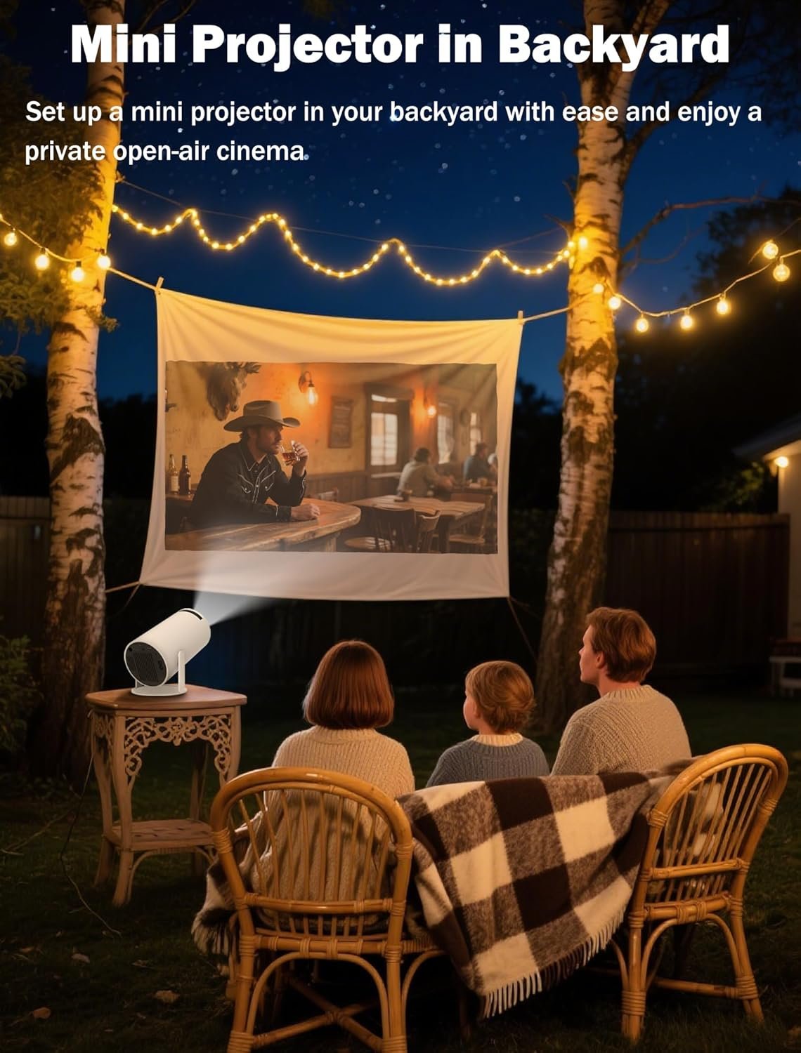 Smart Projector with Built-in Apps:This movie projector is powered by the advanced Android 13 operating system and equipped with the latest H713 chip, giving you instant access to popular streaming platforms like Netflix, Prime Video, YouTube, Google TV, and more. Enjoy a massive library of over 1,000,000 movies and TV shows anytime