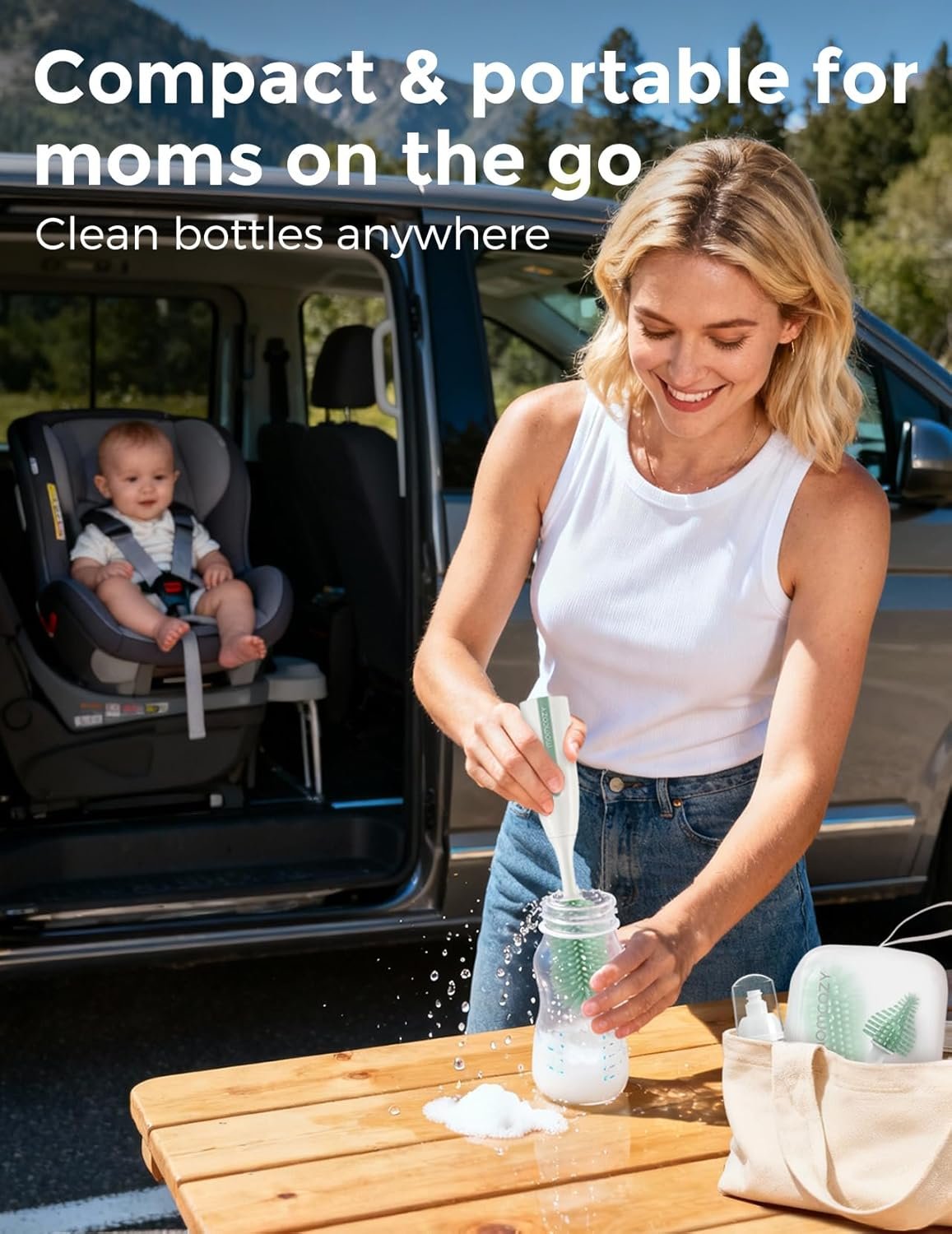 Clog-Free & Bubble-Producing Brush – Gentle yet powerful silicone bristles ensure a deep clean without scratching bottles. The removable, compact design fits perfectly in the included travel bag for on-the-go convenience.Try it with Momcozy’s Bottle Cleaning Liquid for even richer foam and an easier clean.