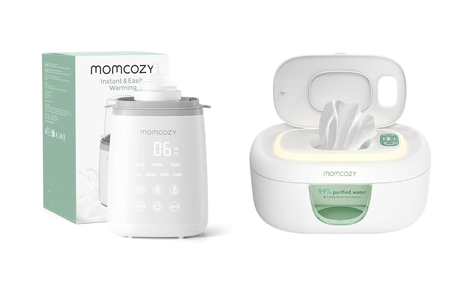 Momcozy Bottle Warmer Grey & Baby Wipe Warmer with Innovative Spring Design