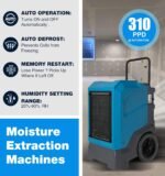 Powerful Moisture Removal: Capable of removing up to 310 PPD (pints per day) at saturation and 165 PPD at AHAM conditions, while only consuming 10.5A of power. With a COP of 2.9 L/Kwh, this dehumidifier offers a super-efficient moisture removal solution for large spaces and restoration jobs.