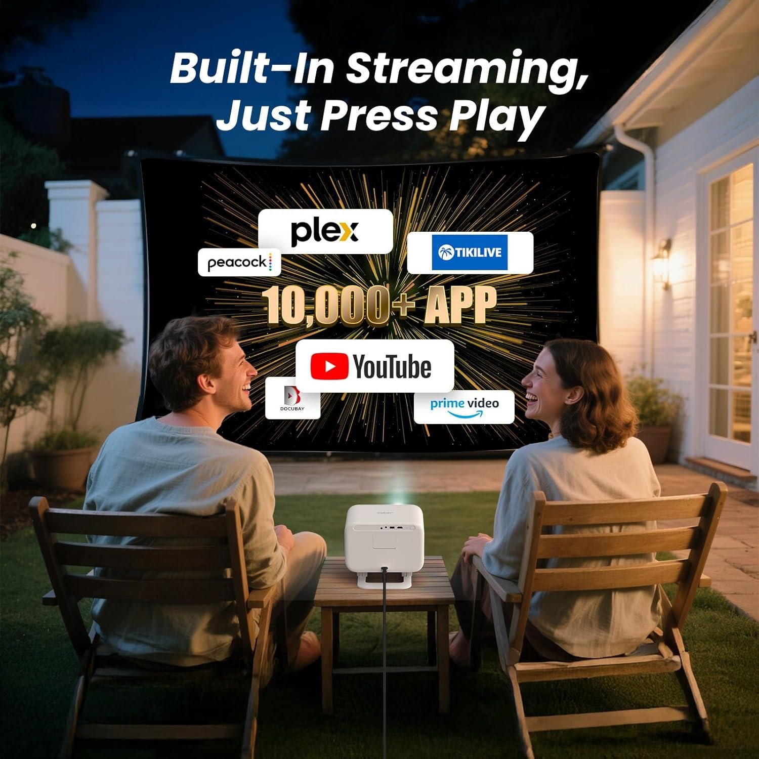 【2026 New Smart TV Projector】Experience seamless streaming with the Yaber L2 Plus smart projector with WiFi and Bluetooth, featuring the latest TV OS and officially licensed Netflix integration. Instantly access over 1,000,000 movies and shows with built-in apps like YouTube, Prime Video, Hulu, and Disney+—no external TV sticks required. Unlike browser-based systems, native app support ensures smoother playback and an immersive viewing experience. Compatible with phones, laptops, it’s the ideal phone projector for home theaters, outdoor movie nights, and gaming marathons.