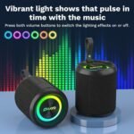 [RGB Colorful Light Effects] Get the party going with crystal-clear sound and vibrant, multi-color flashing lights. The speaker’s dual circular breathing lights automatically change colors in sync with the music, creating an immersive blend of sound and visuals. Want more control? Simply press the volume up and down buttons at the same time to turn the lighting effects on or off.