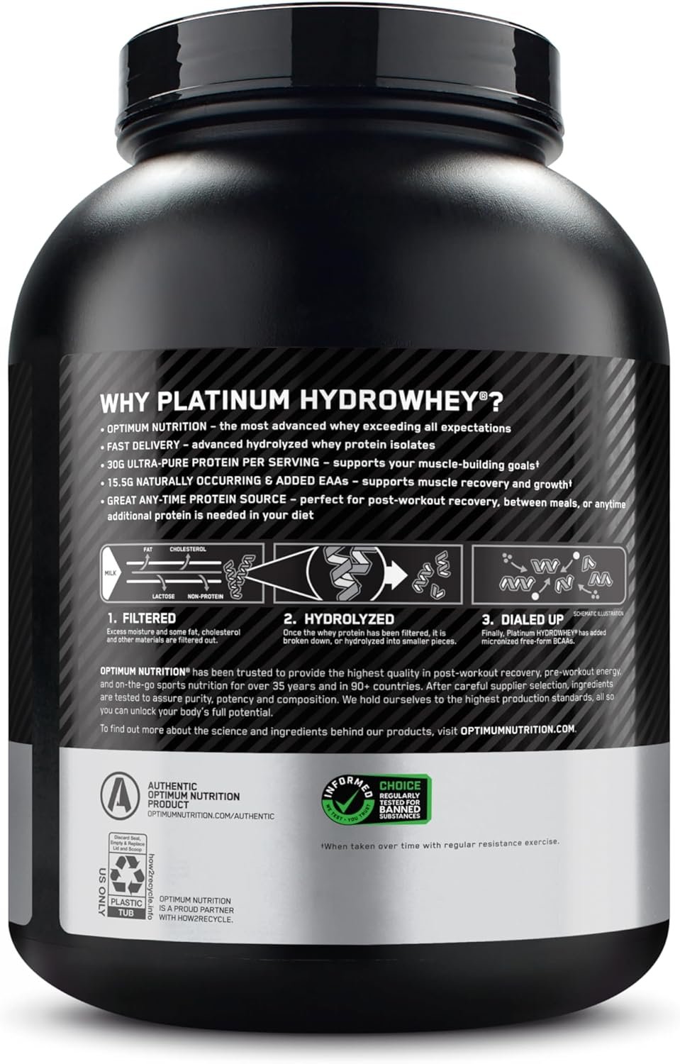 Platinum Hydrowhey is the most advanced whey protein we’ve ever developed. In a word: Excellence. By hydrolyzing whey protein isolates to break larger proteins down into smaller pieces, these ultra-pure whey isolates are able to get into your system rapidly, enabling your muscles to start recovering from heavy training. We’ve dialed up this ultra pure and rapidly-digesting formula with added micronized Branched Chain Amino Acids (BCAAs).