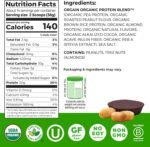CLEANER INGREDIENTS: 20g of organic plant protein and 1-2g of sugar per serving. Our protein blend consists of organic peas, peanut flour, brown rice, and almond protein to provide a complete protein with all nine essential amino acids.