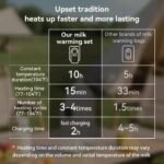 Rechargeable and Portable: No need to always connect to a power source, It can be used as as going out, traveling, etc. ducing waiting time and helping you soothe your baby quickly, we don’t need to worry about baby drinking milk.