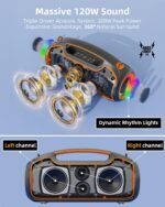 🎶 120W Powerful Sound (200W Peak): 120W ROOM-SHAKING POWER, Crank up the bass that punches like a heavyweight! Perfect for EDM, hip-hop, and metal – feel the beat in your BONES. The VOUPAX Portable Bluetooth Speaker features dual 40W 3.5-inch woofers + dual 40W 2.5-inch tweeter, covering a 60Hz-12KHz frequency response range.
