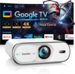 Projector Compatible with Google TV|1800 ANSI|Auto Lens Cap&4D Keystone|Auto Focus|Voice Control Portable Outdoor Projector 4K with WiFi and Bluetooth, Sovboi Smart Proyector for Netflix Home Theater