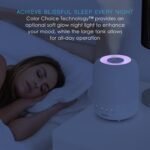 Choose the perfect color for every mood with our color choice technology that allows you to rotate between options or stay on your favorite color. Soft glow mood light colors include red, pink, orange, green, yellow, purple, or blue and double as a chic night light, producing a calming glow for more peaceful sleep.