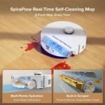 SpiraFlow Real-Time Self-Cleaning Mop: The robot vacuum delivers spotless floors with eight precise hydration points that evenly distribute clean water while the built-in scraper refreshes the mop in real time and prevents streaks. The edge-adaptive roller reaches corners, chair legs, and edges with ease for 100% sweeping, using 15N pressure and 220RPM rotation for a deep, consistent clean.