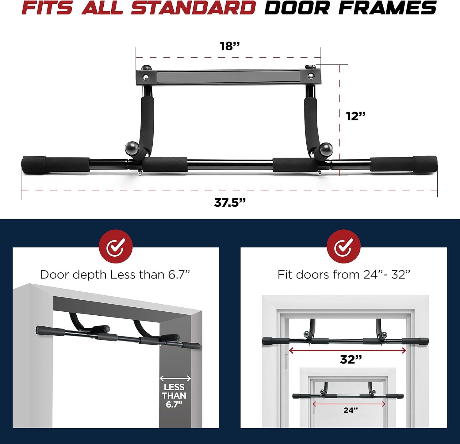 Sagler Pull Up Bar Doorway Heavy Duty Chin Up Bar Trainer For Home Gym Sagler Pull Up Bar Doorway Heavy Duty Chin Up Bar Trainer For Home Gym pull up bar or for sit-ups, pushups and dips. Pull up station are easy to install and does not require any drilling. Pull up rack, fully functional, all-in-one pull up, chin up, push up bar in the market today pull up bar door multi-function chin up bar is an inexpensive and easy way to tone up your muscles and get that beach body you always wanted. Pull up bar for door works on your back, chest, shoulders, arms, and abdominal compound muscles! Pull Up Bar Doorway is a multi-function strength training device that promises to sculpt your upper body through pull ups, chin ups, and abdominal work.