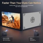 Instant Focus in Real Time: Experience true set-and-forget convenience with the GC355 outdoor projector, powered by advanced Time-of-Flight (TOF) technology. It automatically delivers sharp focus and perfect keystone correction— no manual tweaking needed, no more old grid focus map, always real-time images. Equipped with a precision AI sensor, this auto-focus projector constantly monitors its position. If it’s bumped, tilted, or moved, the smart system detects changes and readjusts the image for a perfectly aligned projection. Plus, its dynamic obstacle avoidance feature intelligently scans walls and nearby objects, automatically resizing and positioning the screen to fit your space