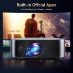 Immersive Experience with a True Smart TV OS: The smart projector comes with streaming apps, Including Support for Prime Video, and YouTube. Support download Disney+, Apple TV, and Live TV. Turn it on and access millions of movies, shows, and live content from around the world. Use the built-in web browser to stream from services like Hulu, Peacock, and others. Unlike unofficial or pirated systems that freeze, crash, or fall out of date, the Smart TV projector with built-in apps runs on an official OS. This outdoor movie projector is updated by a dedicated team of developers, so you always get the latest features and smooth performance — no more frustrating lag or app crashes.