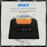 IPX7 Waterproof Outdoor Speaker: There’s no need to pack up the music if a little rain threatens your outdoor party — Stomp can handle it. With an IPX7 waterproof rating, it can be caught in a full-on downpour and come out cranking.