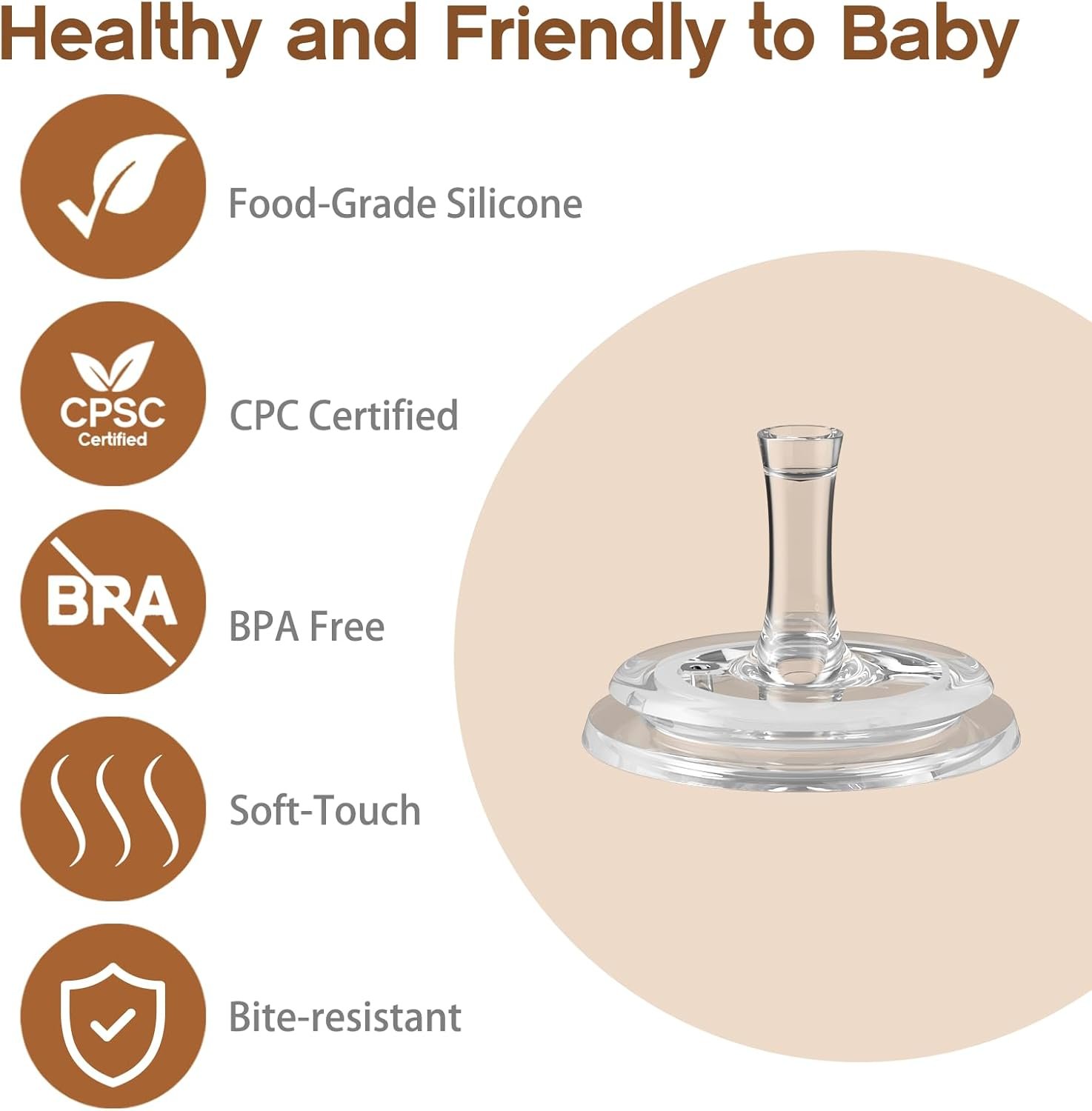 【Food-Grade Silicone Material】 The straw nipple is crafted from 100% food-grade silicone, free from BPA, PVC, and phthalates. It’s bite-resistant and durable. CPC certification ensures baby safety. The ultra-soft silicone texture is gentle on skin, providing a comfortable sucking experience while protecting baby’s gums. Dishwasher and sterilizer safe for easy cleaning.