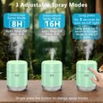 Two Customizable Spray Modes: This mini humidifier has two modes When you press the button first time, it will continuously spray for 8 hours. When you press again and it will intermittently spray (stop 2 seconds) for 16 hours. Adapt to your needs—whether working, sleeping, or refreshing your space