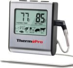 ThermoPro TP16 Large LCD Digital Cooking Food Meat Thermometer for Smoker Oven Kitchen BBQ Grill Thermometer Clock Timer with Stainless Steel Temperature Probe