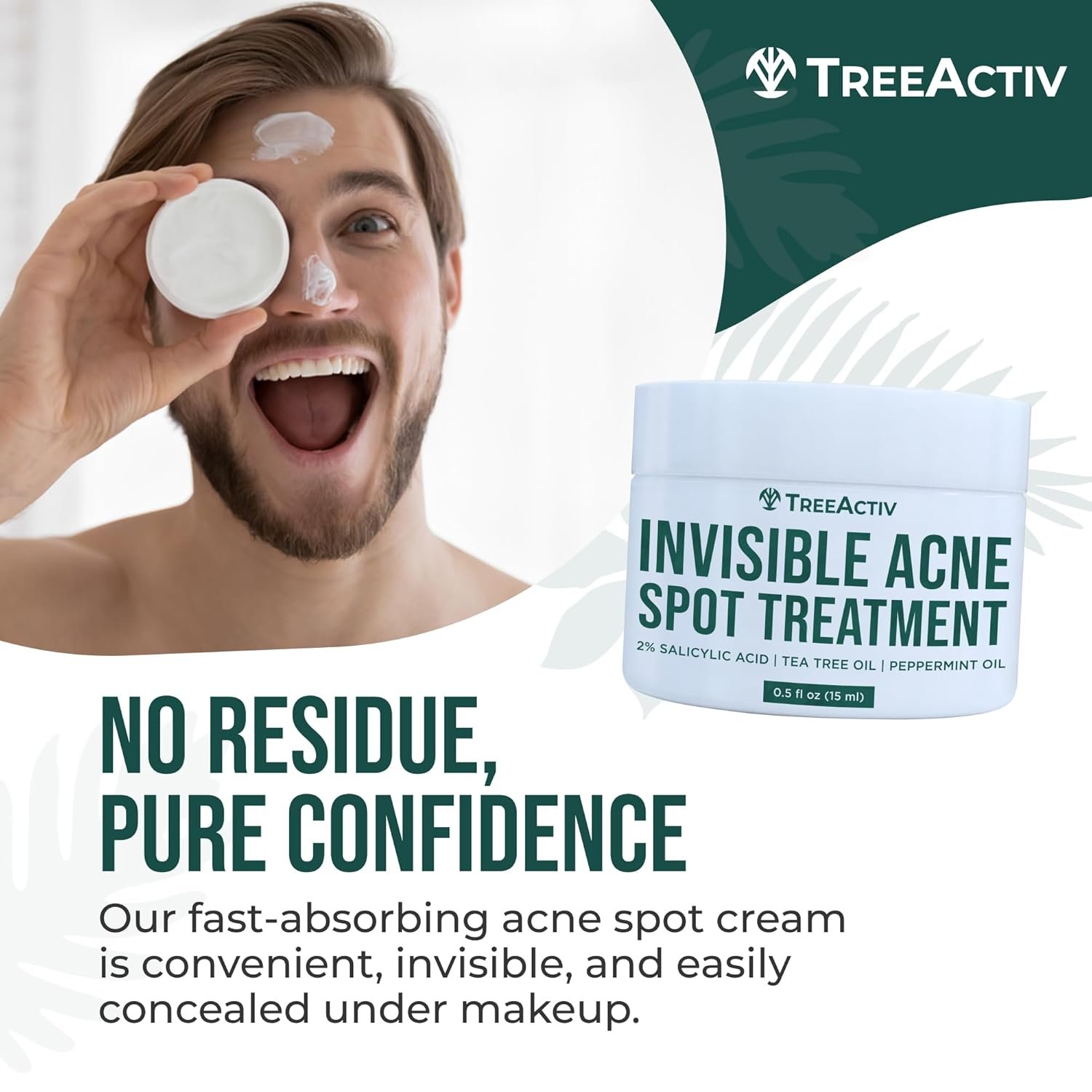 TreeActiv Invisible Salicylic Acid Cystic Acne Treatment For Face Original Formula, 0.5 fl oz, Acne Face Cream, Acne Spot Treatment for Face & Body, Acne Clearing Cream Moisturizer for Teens & Adults