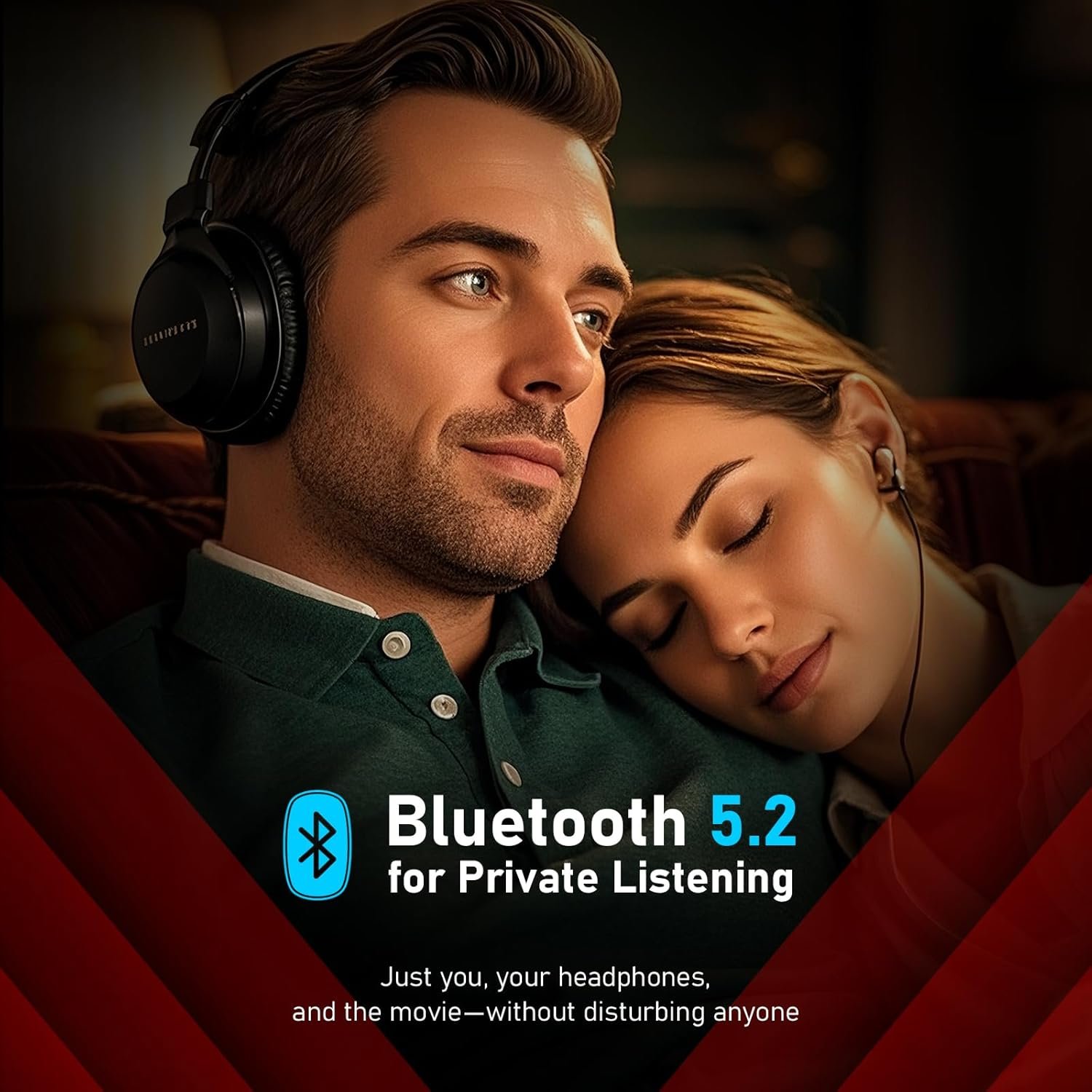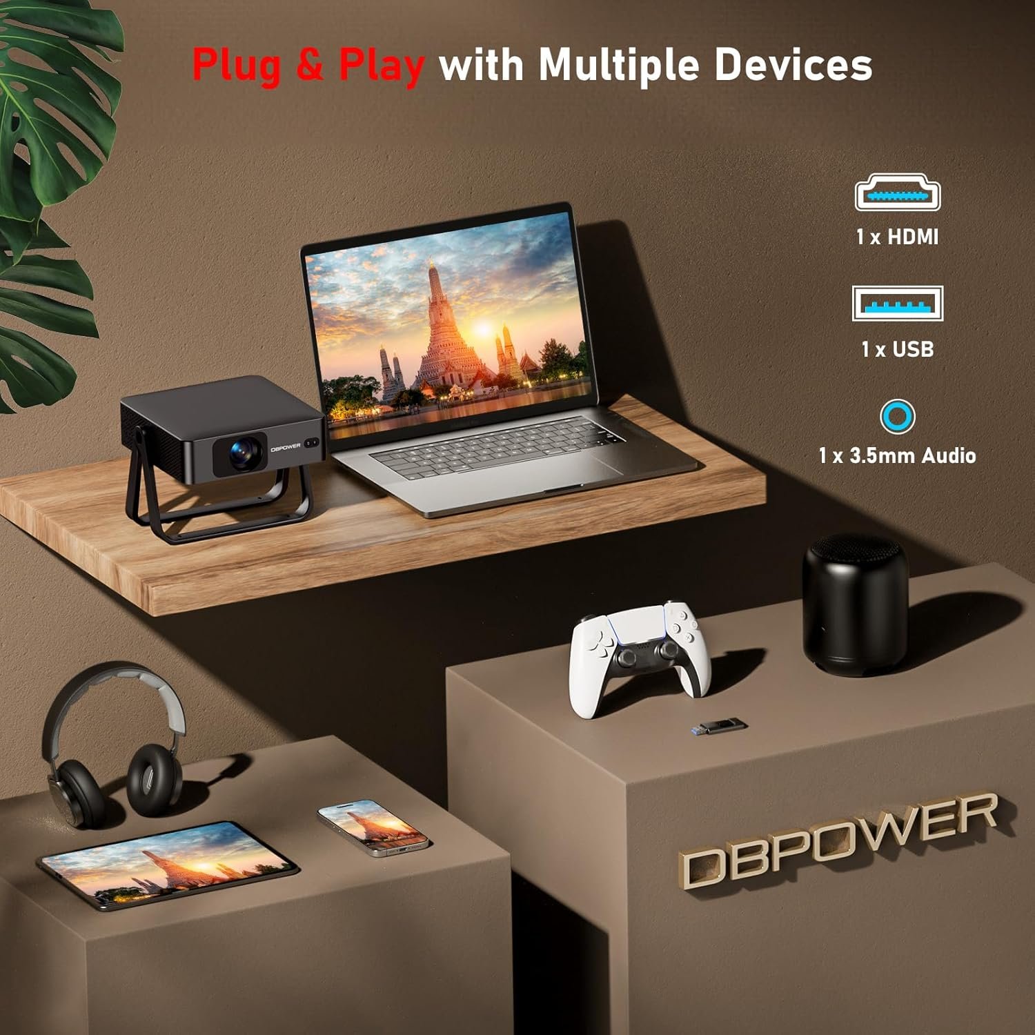 [Two-Way Bluetooth 5.2 | Speaker & Streamer in One] Enjoy next-level audio freedom with built-in Bluetooth 5.2. DBPOWER N5 Bluetooth projector isn’t just a small projector—it’s like a standalone Bluetooth speaker, too. Stream music directly from your phone to the home projector when the screen is off, or connect your Bluetooth headphones or external speakers for private, theater-quality sound. Whether you’re watching late at night or hosting an outdoor movie night, two-way Bluetooth means: Transmit audio to headphones or speakers for immersive listening. Receive audio from your phone to enjoy your playlists on powerful projector speakers. Note: Bluetooth supports audio only, not video