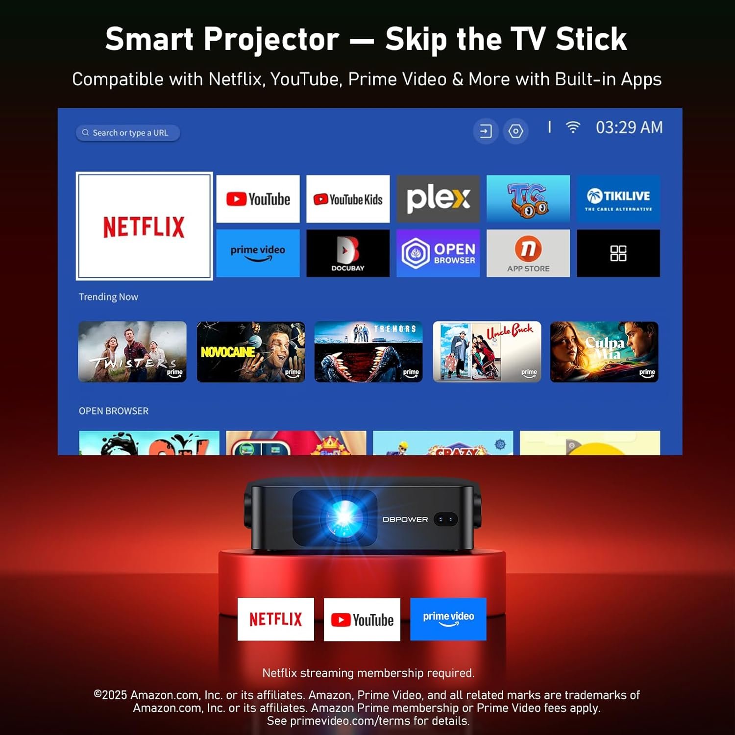 [Ultra-Slim 1.97″| Auto Focus | Built-in Apps | 360° Stand] Smart Mini Projector with WiFi and Bluetooth, Compatible with Netflix, Youtube, Prime Video, DBPOWER N5 Portable Movie Projector for Bedroom