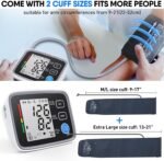Upper Arm Blood Pressure Monitor for Home Use 2 Cuff Sizes, 9-17” & 13-21”Extra Large BP Cuff Automatic Digital Blood Pressure Machine 2 Users 180 Memories USB Cable 4 AA Batteries