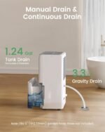 【Water Tank & Drain Hose】The 1.24-gallon visual water tank has an auto shut-off when full. The top has a soft pad to prevent water splashing when carrying. It includes a 3.3-foot drain hose (φ12.7mm) that can connect to a garden hose of the same diameter (not included). Note: Do not bend or raise the hose above the drainage outlet level when using the hose drain.