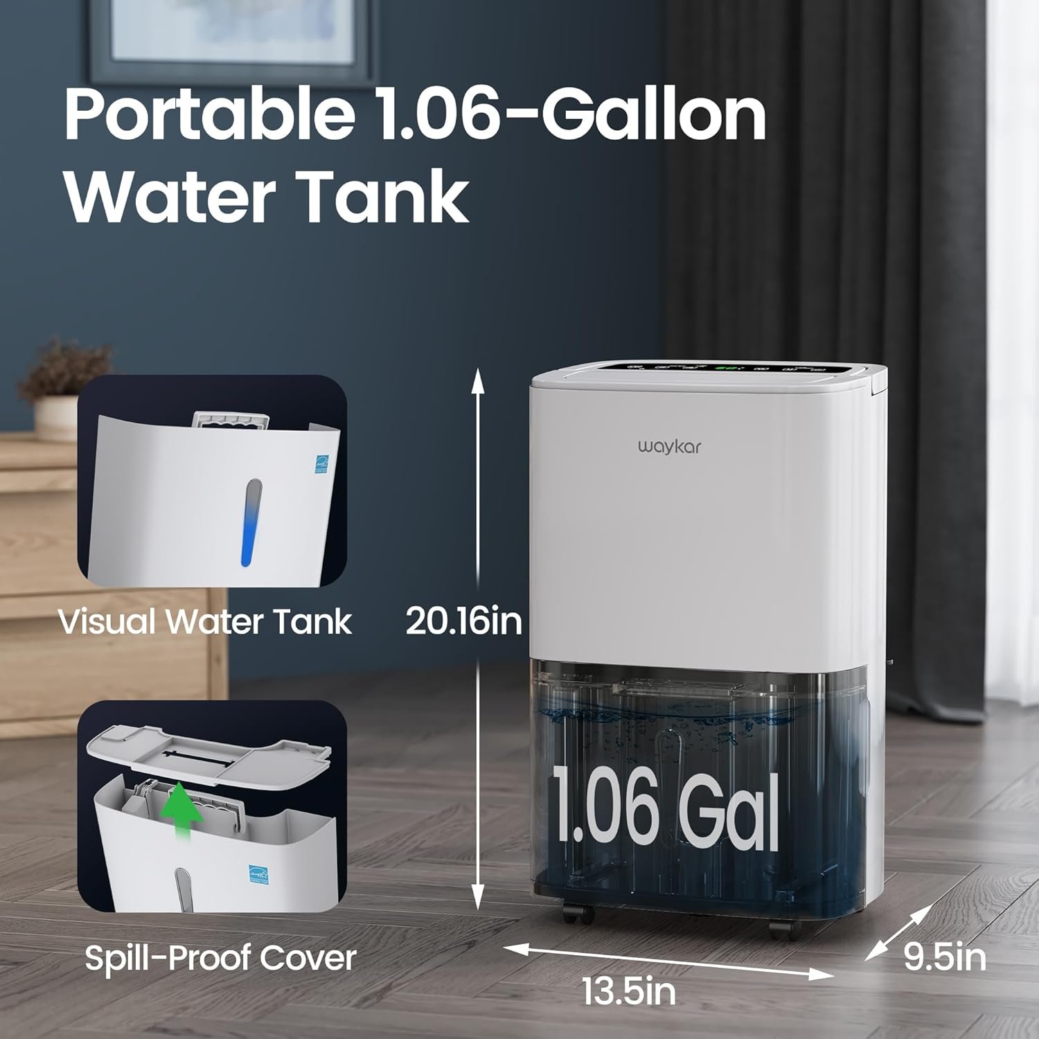 Waykar 120 Pints 2025 Energy Star Home Dehumidifier for Spaces up to 6,000 Sq. Ft at Home, in Basements and Large Rooms with Drain Hose, Handle, Auto Defrost and Self-Drying