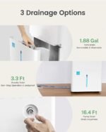 【Pump Drain, Water Tank & Drain Hose】Built-in pump with a 5-meter (φ5.5mm) hose and a lift height of 5 meters for efficient drainage. The 1.88-gallon tank has auto shut-off and a splash-proof soft pad. Includes a 3.28-foot drain hose (φ12.7mm) for optional garden hose connection(not included, Note: Do not bend or raise the hose above the drainage outlet level).